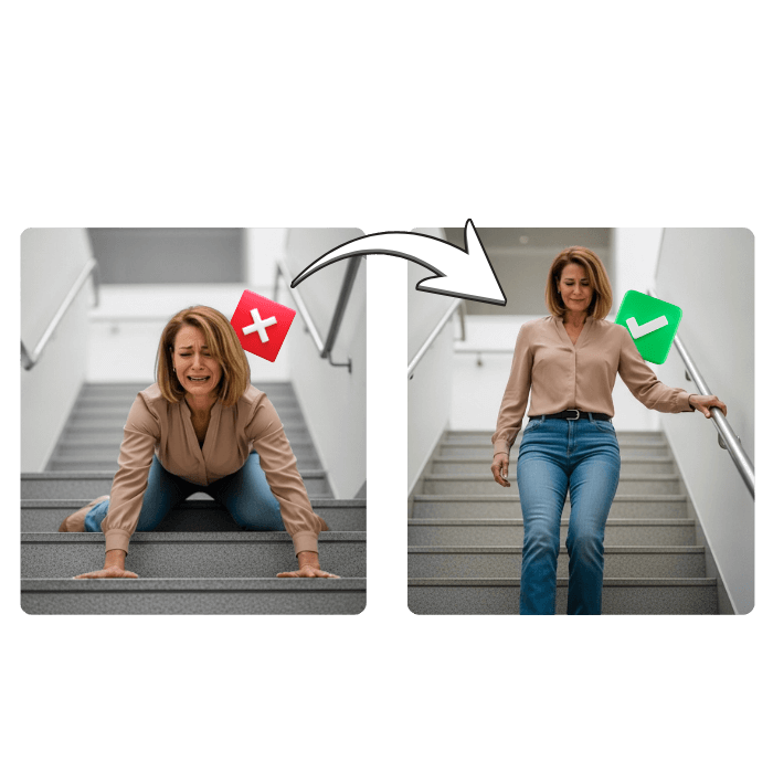 Vai poder voltar a descer e subir escadas sem medo de sofrer algum acidente, ou das pernas não aguentarem.