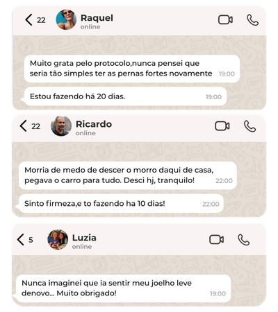 Veja o que falam as pessoas que aplicaram Protocolo Pernas Fortes: